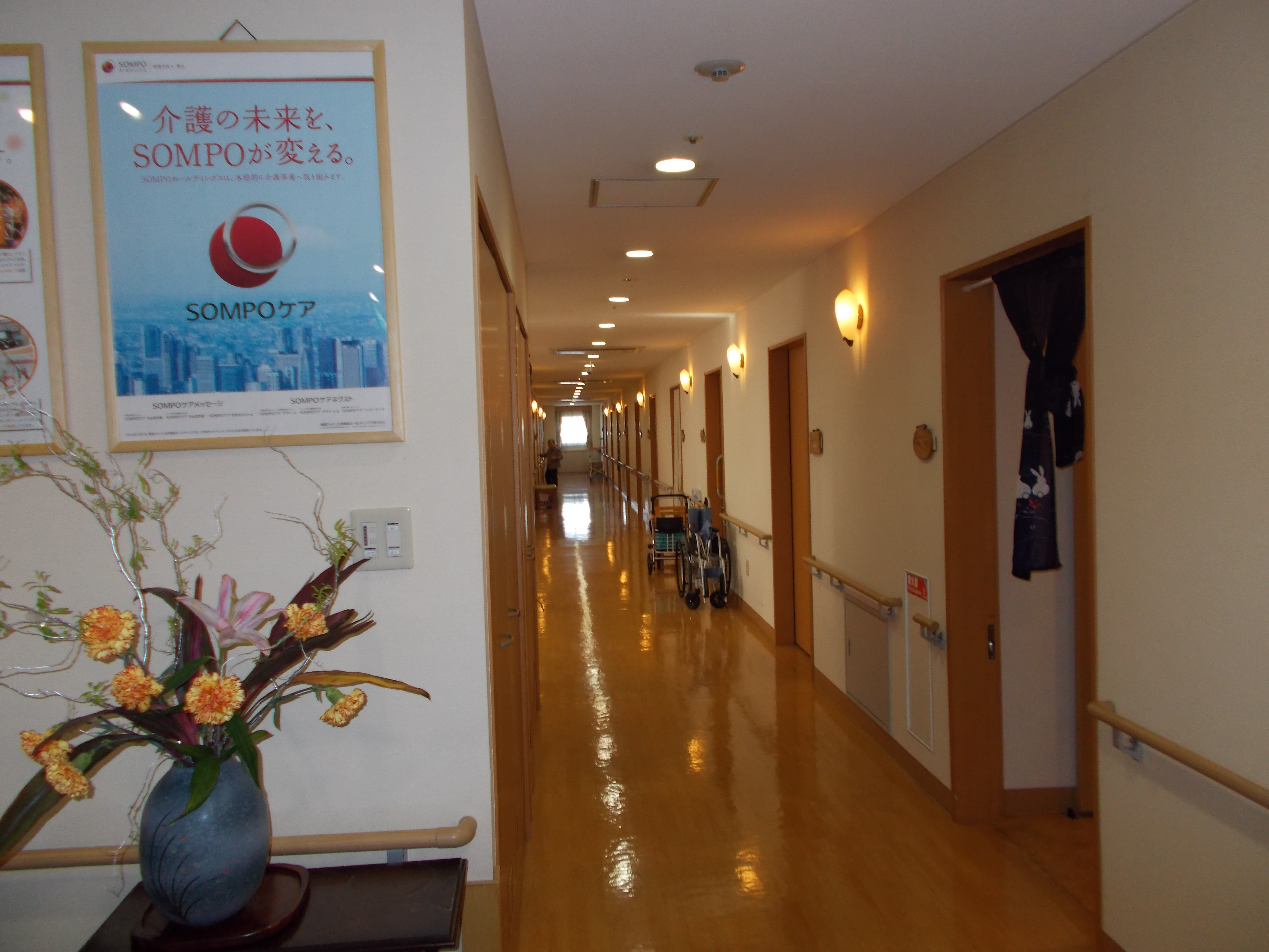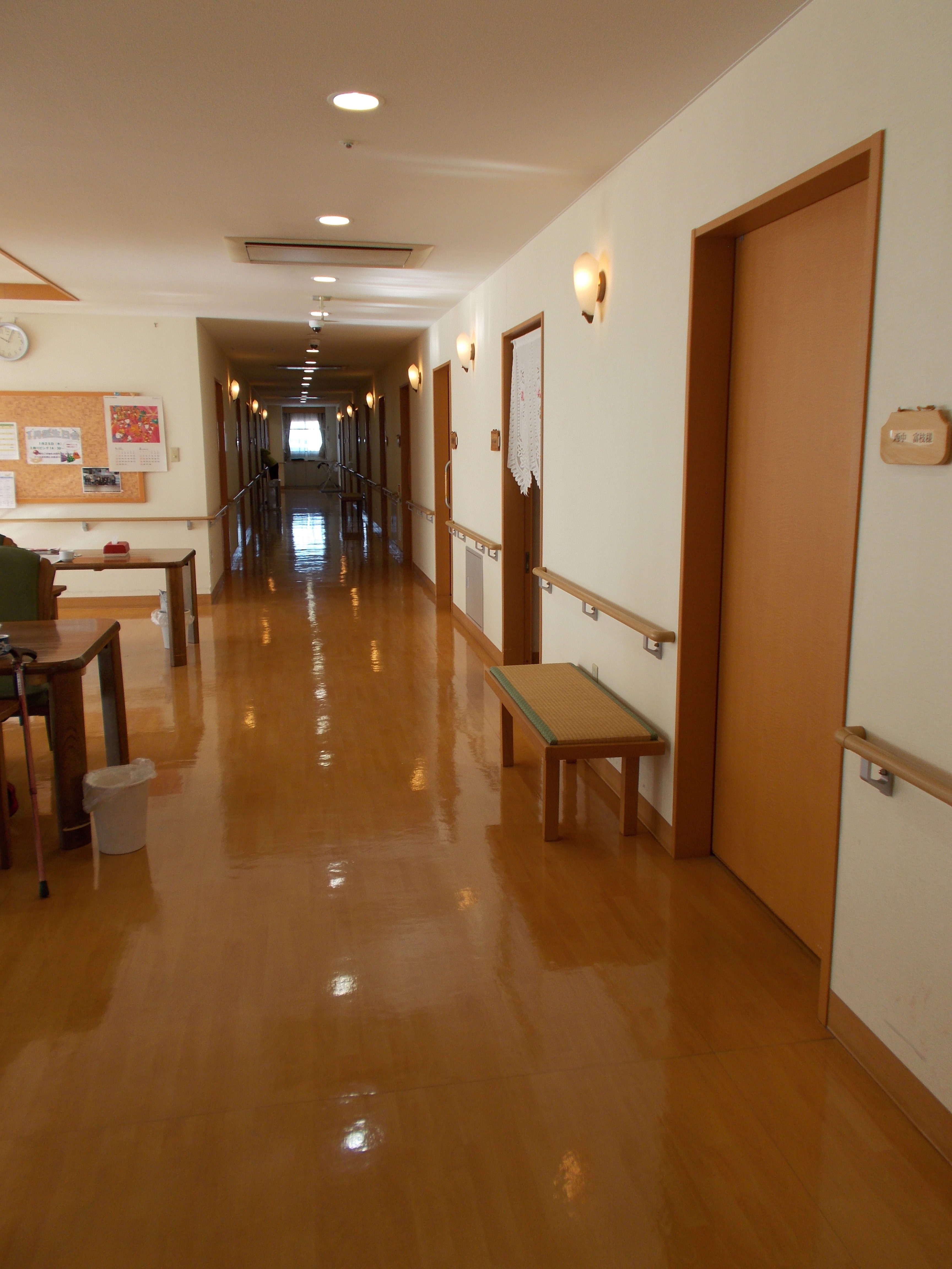 廊下 広い廊下で手すりも設置されていて、一直線に伸びているので安全に歩行することが出来ます。(そんぽの家 東静岡)