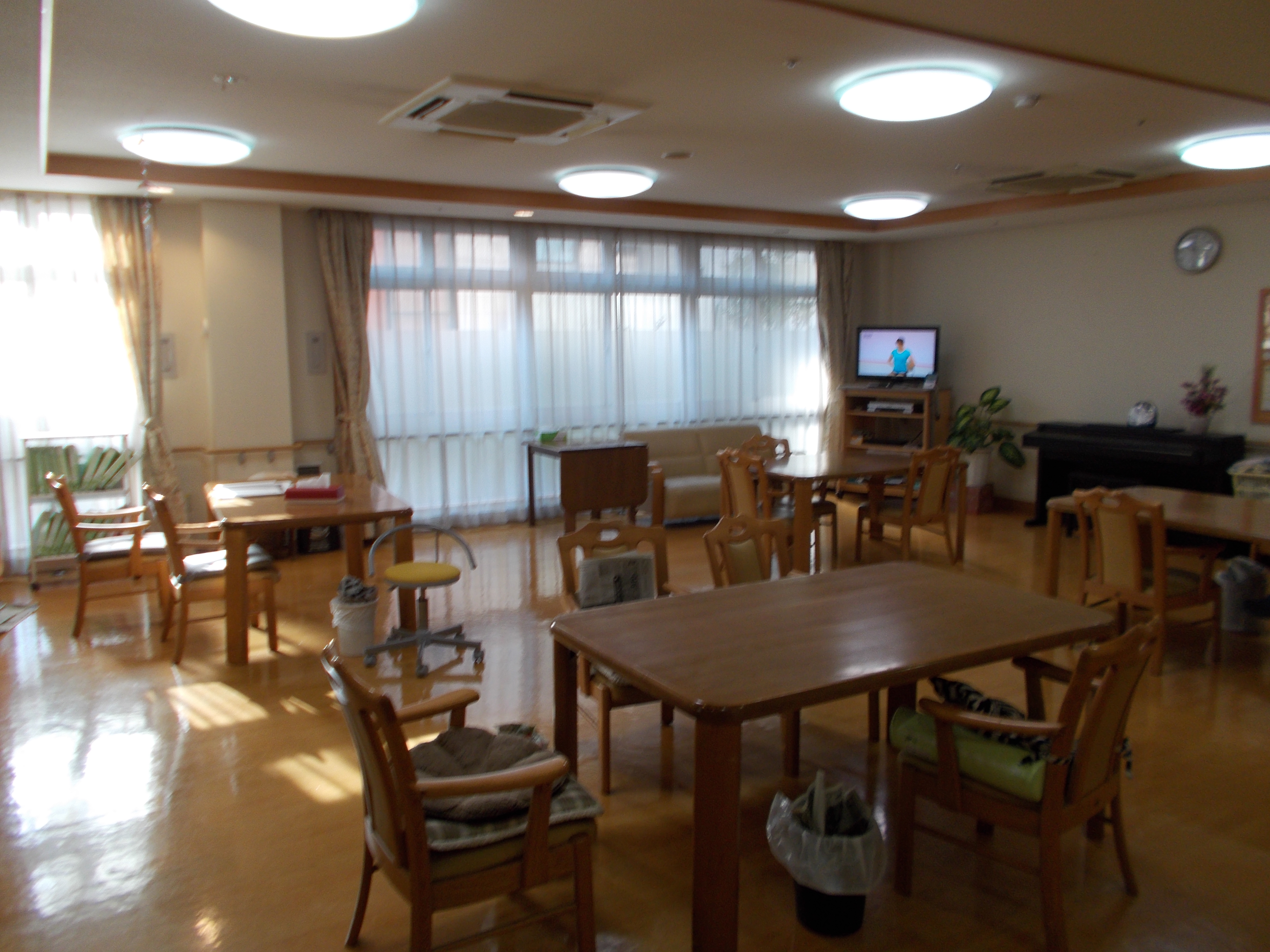 各階ごとのユニットケアで、お馴染みの人達と各階の中央近くにあるリビング、ダイニングでお食事をしたり、TVを見たり、レクレーションを行ったりしています。